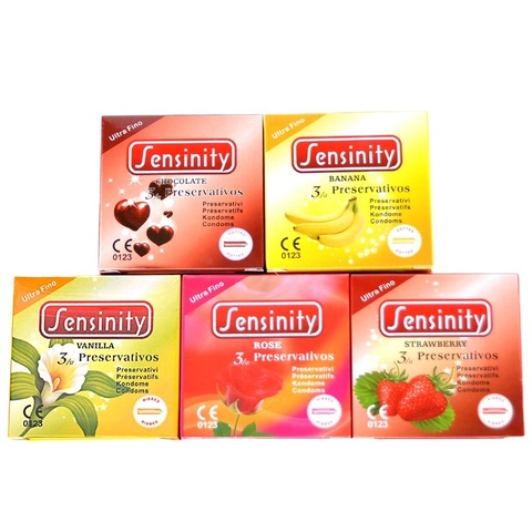Recare de tres colores Sexy condón foto de la caja de sabores de frutas sexo preservativos para los hombres